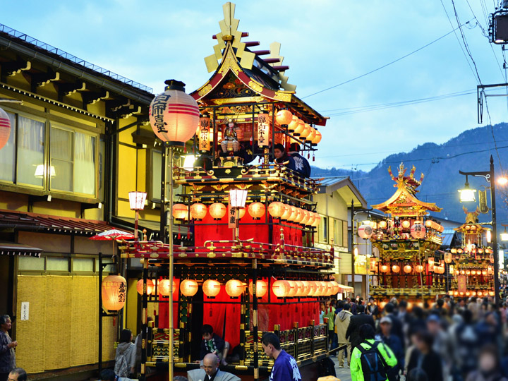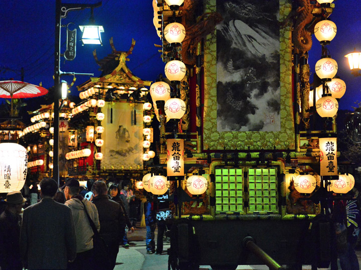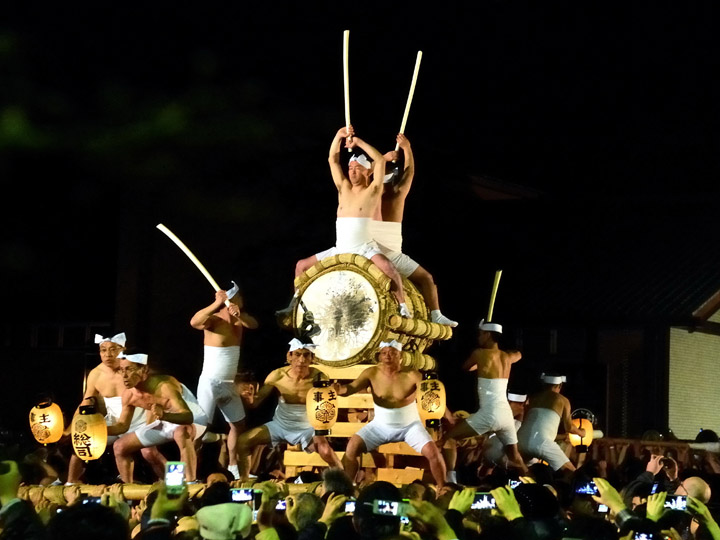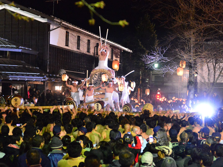 国指定重要無形民俗文化財の岐阜県飛騨市古川町の起こし太鼓の模様です。 町が祭り一色になります。高山は山車だけですが、こちらは太鼓もありますし、お囃子もテープで流していません。内容の濃い素晴らしいお祭りです。