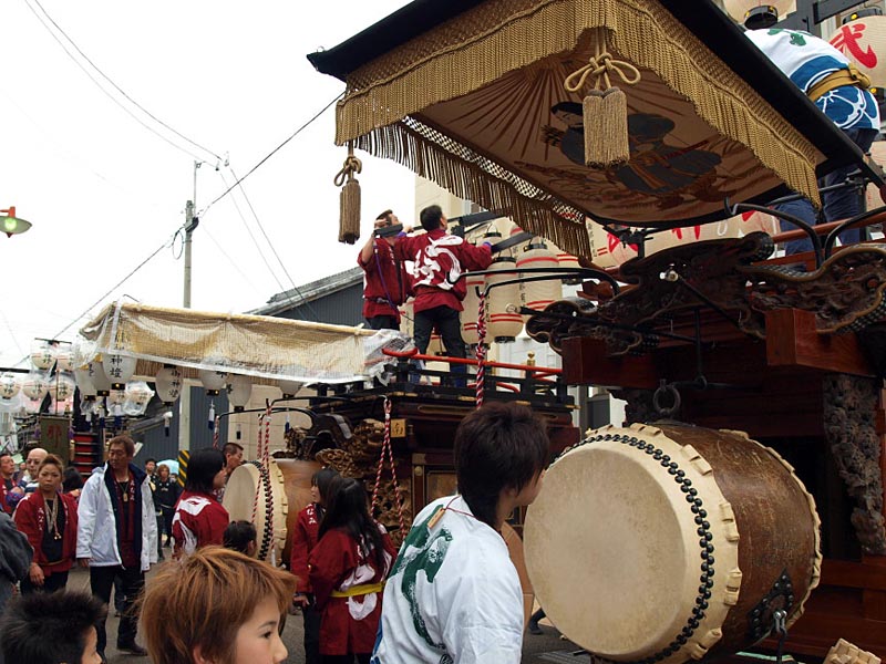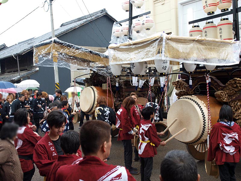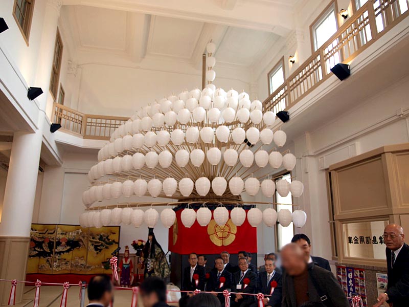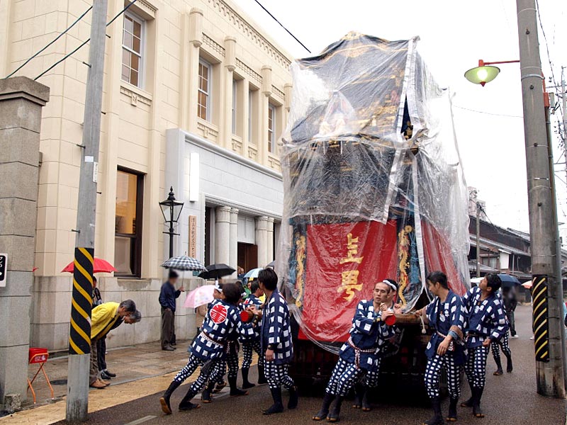 旧津島信用金庫本店の歴史ある建物を再利用して作られた、津島市観光交流センター(愛称:まつりの館「津島屋」)のオープニングセレモニーです。われわれ上之町車も3台の石取と共に参加しました。