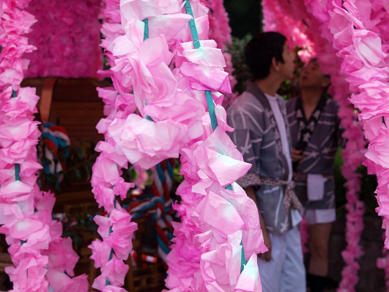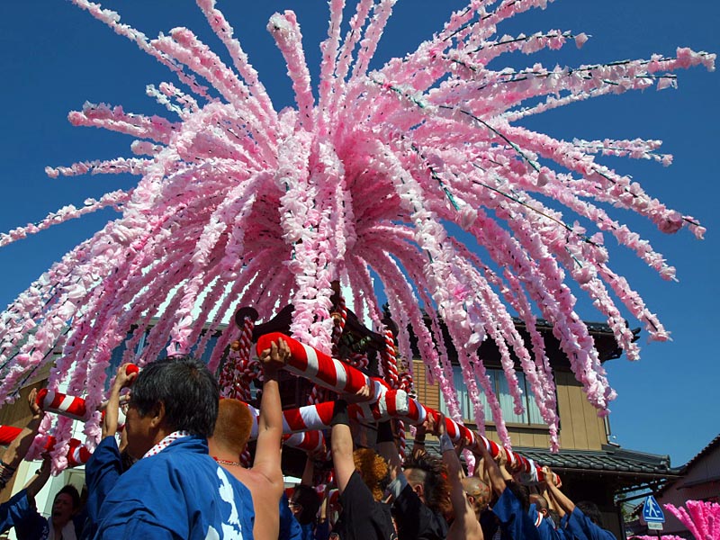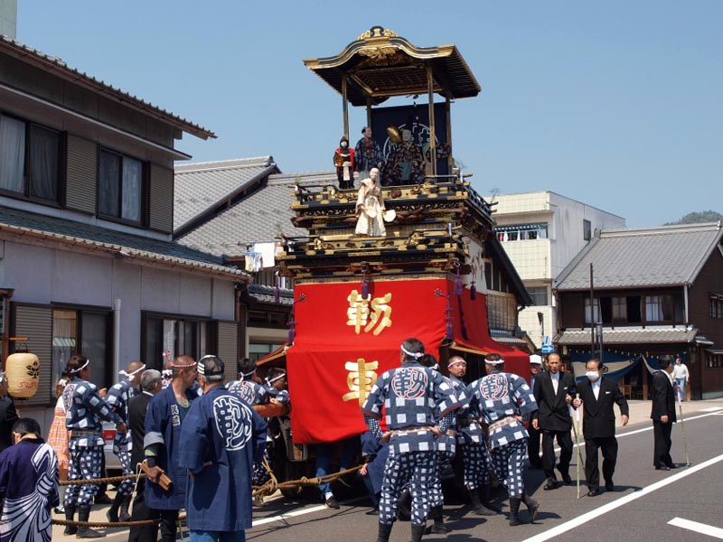 4月4日5日と二日間に渡って、「花みこし」「山車まつり」・「仁輪加」の三部構成から 成り立つ、八幡神社の祭礼です。