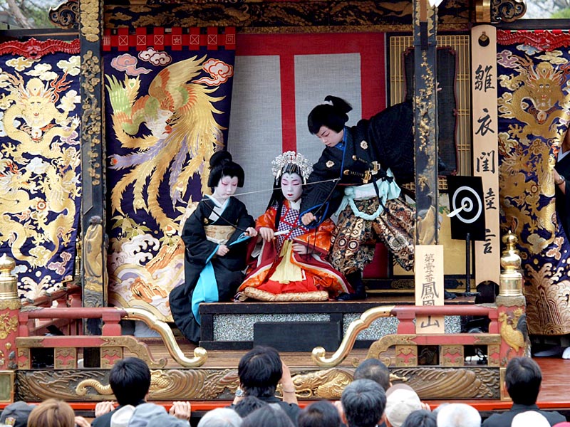 日本三大山車祭りの一つで山車の中で子供歌舞伎が演じられます。