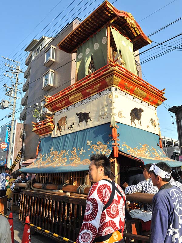 時間がなく、山車の動きの画像ですが、管理の行き届いたとても素晴らしい山車です。 天候にも恵まれ大勢の人出があり、露店も多く賑やかなお祭りでした。