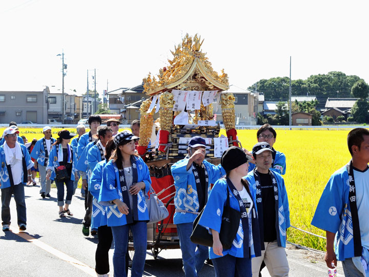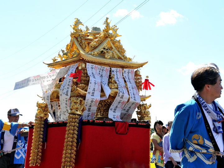 愛知県の西の端、弥富市の中心部にある鯏浦(うぐいうら)地区のお祭りです。1959年の伊勢湾台風で全てを失ってしまったのですが、50有余年をかけてここまで復興しました。