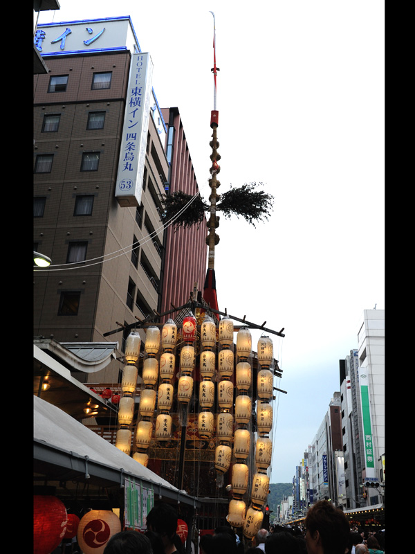 山車の上の鉾は6階建のビルに相当するぐらい長くて高いです。