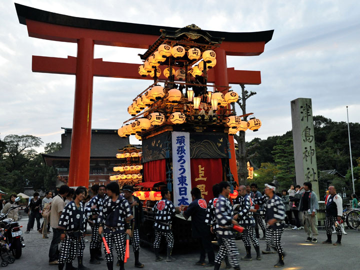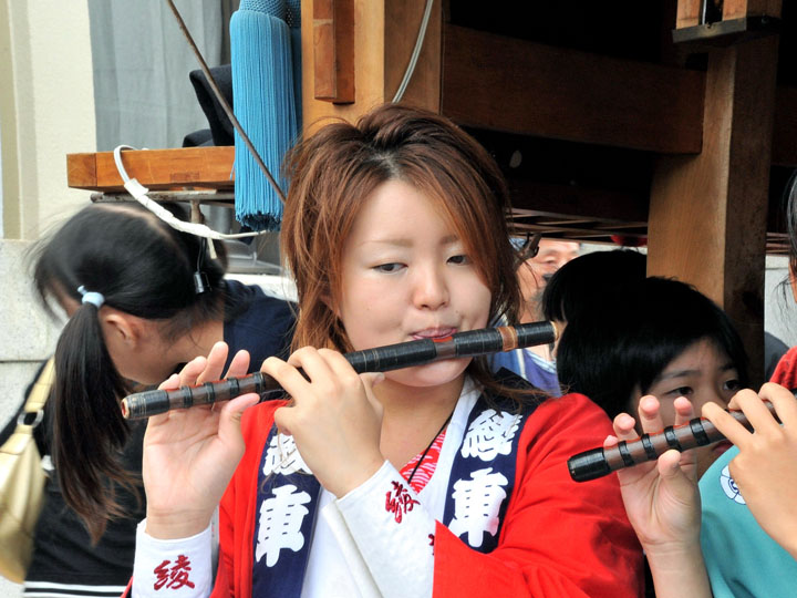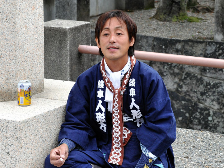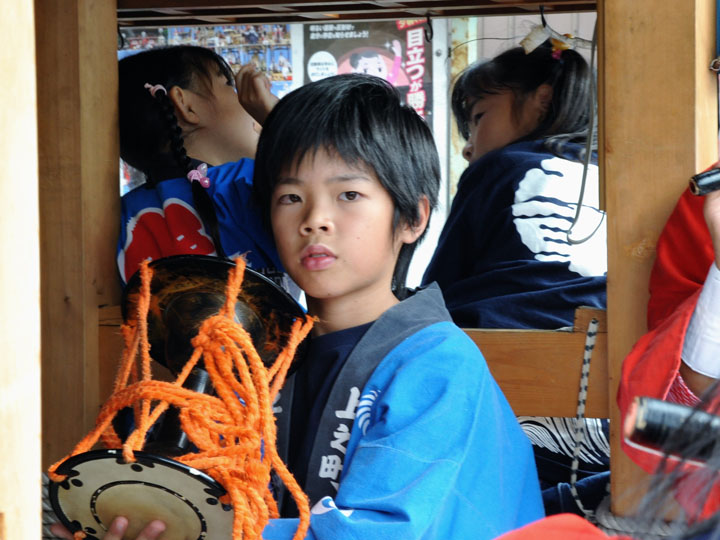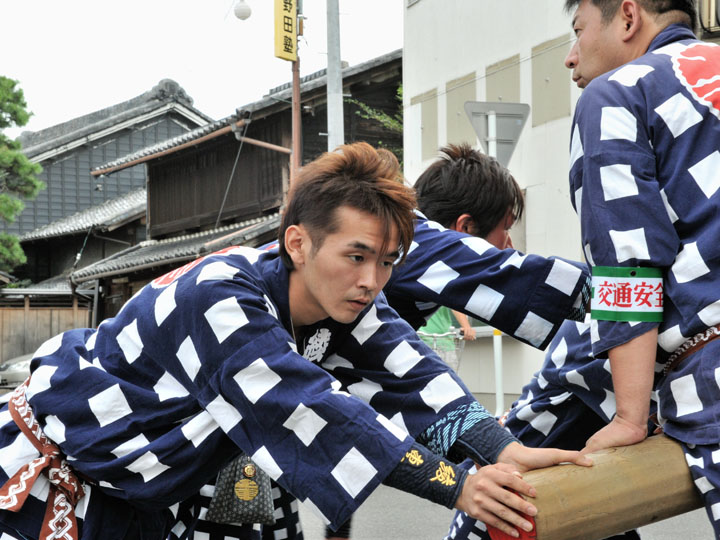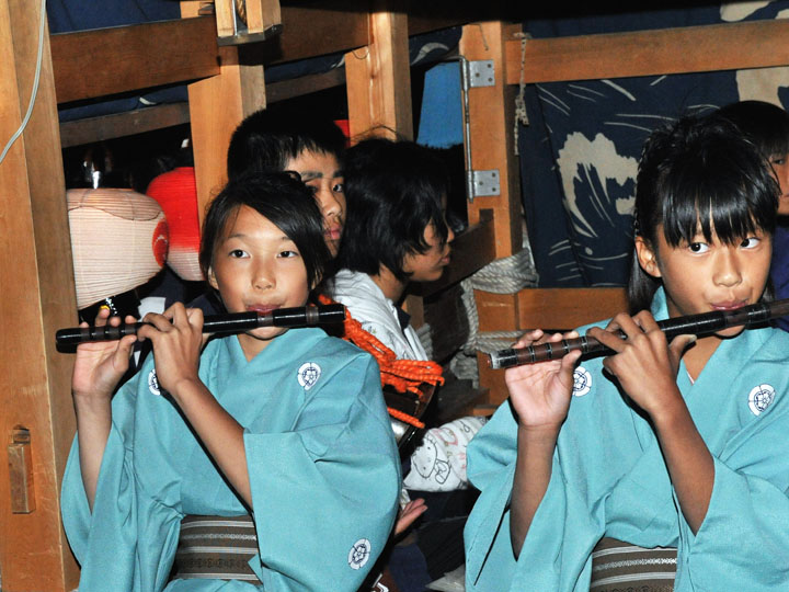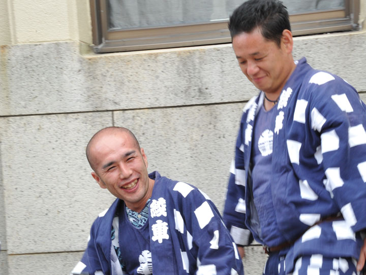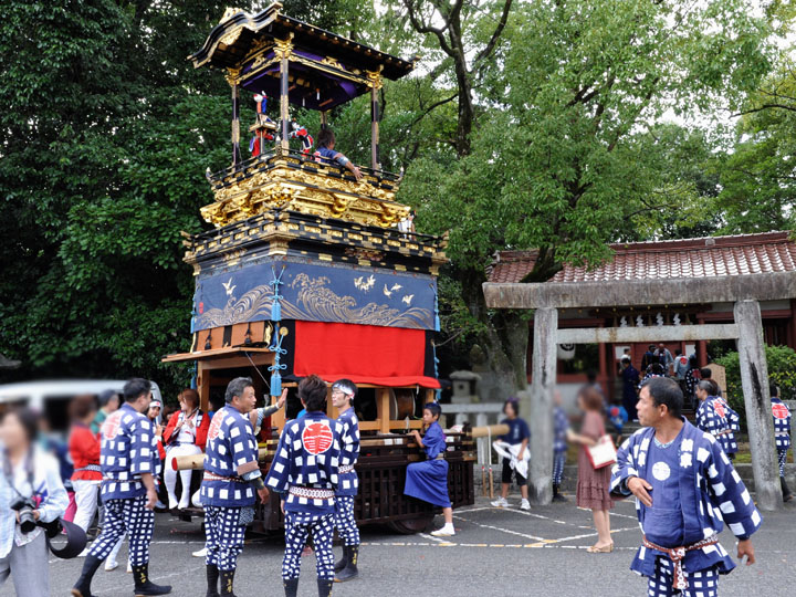 血沸き肉躍る興奮状態!いつでもかかってこい!の上車メンバーが繰り広げる人形からくりと車切りであります。 山車の前輪を上げて、くるくるくるくる・・・と上車メンバーが疲れ果てるまで行う車切りは東洋一の奇祭と言っても過言ではありません。